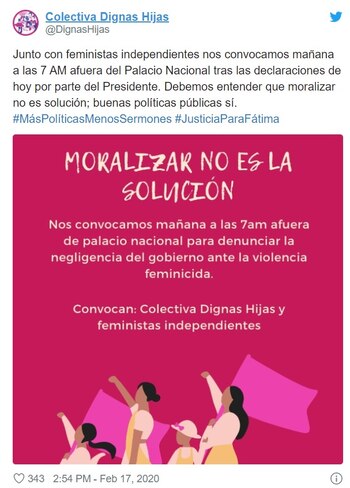 “Cuando el presidente propone en su mañanera como solución de fondo purificar a la sociedad junto con las iglesias nos parece escandaloso”, señaló una de las integrantes de la colectiva.