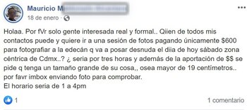 La víctima de 17 años, que denunció a Mauricio "M", afirmó que acudió entre 15 a 20 sesiones de fotos y la última fue el 22 de junio de 2019, cuando se negó a tener relaciones con un cliente, lo que molestó a este hombre.