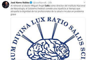 A través de su cuenta de Twitter, el ex secretario de Salud, José Narro Robles, calificó la remoción de Celis como “una injusticia al tiempo que atropella la dignidad de los profesionales de la salud e incuba un problema grave”.