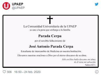 Por su parte, la UPAEP también emitió un comunicado en el que lamentó la muerte de los colombianos y expresó la contundente: