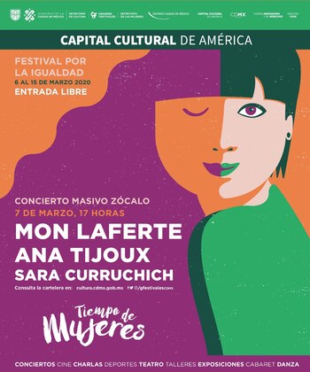De este modo, el Zócalo capitalino recibirá desde Chile a la cantautora y compositora Mon Laferte y a la rapera Ana Tijoux, además a la cantante y compositora guatemalteca en lenguas originarias Sara Curruchich, artistas que unirán sus voces en un concierto masivo el sábado 7, a las 17:00 horas.
