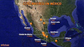 Las secretarías de Salud de los estados de Querétaro y Nuevo León confirmaron este miércoles los primeros casos de COVID-19, con lo que el total en México llegó a 12.