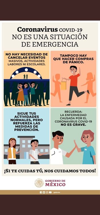 Así es, mientras el subsecretario federal explicaba la importancia de mantener una “distancia sana”, la Conade publicó que “No hay necesidad de cancelar eventos masivos, actividades laborales ni escolares. Sigue tus actividades normales … La enfermedad causada por el coronavirus COVID-19 no es grave”.
