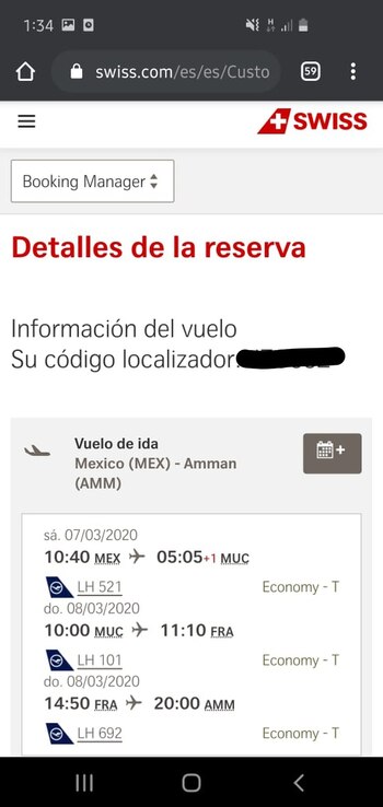 Fue entonces que Pérez decidió checar los registros de su vuelo; sin embargo, al abrirlos se dio cuenta de que solamente le aparecía el registro de los traslados que reservo de México a Ammán, pero los vuelos que había reservado y pagado de regreso habían desaparecido.
