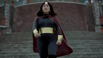 En el video de menos de un minuto de duración, se observa que una mujer vestida con traje negro, capa y diadema en color guinda con detalles dorados se presenta como Susana Distancia.