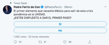 Así mismo en un tuit fijo en su cuenta de Twitter, Ferriz de Con hace la siguiente encuesta:
