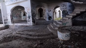 La mansión tiene una extensión de casi una cuadra y sus detalles lujosos ahora están cubiertos por escombro, maleza y pintas de graffiti, pero aún se puede apreciar que fue diseñada en tres pisos con lujosos baños con tina, spa, más de un jacuzzi y distintos túneles.