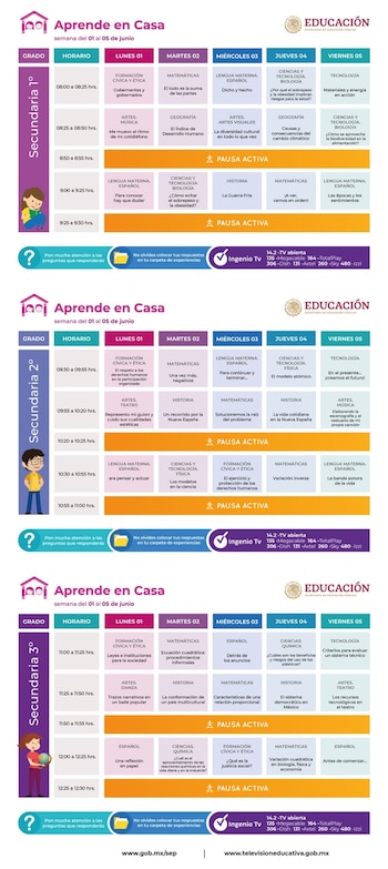 Por medio de Internet o televisión, alumnos de diversos niveles siguen el programa Aprende en Casa de la Secretaría de Educación Pública (SEP), debido a la situación de confinamiento que provoca el coronavirus en México, y estos son los horarios.