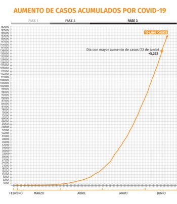 Pero las cifras cuentan una historia diferente. Un día después de su tuit del 11 de junio sobre Ciudad de México, la nación reportó un récord de 5.222 casos nuevos de la mortal enfermedad. Al martes, las infecciones de México se han más que duplicado desde el 25 de mayo a 154.863, con una cuarta parte de ellas en la capital. Las muertes ascienden a 18.310, según el recuento oficial.