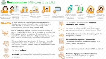 Habrá una serie de reglas básicas para las actividades que estén abiertas en semáforo naranja: los trabajadores deberán usar cubrebocas y caretas de manera obligatoria, en negocios mayores a cinco trabajadores deben haber filtros sanitarios; también se debe orientar la Sana Distancia, y uso de gel antibacterial.