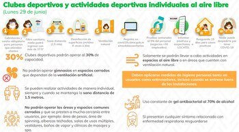 En ese sentido, detalló las actividades que podrán abrir de manera paulatina: el lunes 29 de junio comercio al menudeo, además las trabajadoras del hogar podrán volver a trabajar, ya se tendrá permitido realizar actividades deportivas al aire libre siempre y cuando no sean en equipo; el martes 30 podrán abrir los negocios del Centro Histórico, ésta zona contará con un programa especial de apertura; mientras que el miércoles 1 de julio podrán abrir hoteles al 30% de capacidad y restaurantes a 30%, también aquellos establecimientos de comida que tengan espacios al aire libre podrán hacerlo al 40 por ciento.