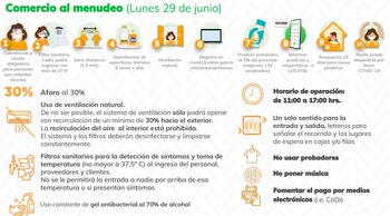 El jueves 2 de julio podrán volver a operar tianguis, mercados sobre ruedas y bazares; el viernes 3 estéticas, peluquerías y salones de belleza cuidando que no se llenen sus locales y deben priorizar hacer cita previa; y hasta el lunes 6 podrán operar las tiendas departamentales al 30% de capacidad.