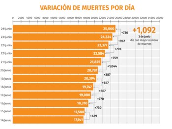 Lo anterior significa que esta noche se presentaron 6,104 casos de contagio más, así como 736 más decesos en un periodo de 24 horas.