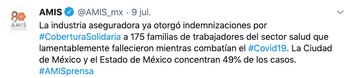Arturo Herrera, secretario de Hacienda y Crédito Público, anunció el seguro Cobertura Solidaria de Apoyo al Sector Salud Público, otorgado gratuitamente por las 87 organizaciones que integran la Asociación Mexicana de Instituciones de Seguros (AMIS) a los 1.6 millones de trabajadores que laboran en hospitales Covid-19.