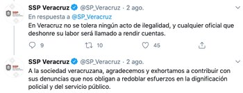 A través de su cuenta de Twitter, la dependencia afirmó que en Veracruz no se tolera ningún acto de ilegalidad y que cualquier oficial que “deshonre su labor”, será llamado a rendir cuentas.