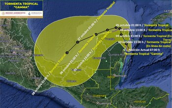 El Servicio Meteorológico Nacional pronosticó la trayectoria de La Tormenta Tropical “Gamma”, este sábado se encuentra en pegando Quintana Roo, para el 4 de octubre se espera que siga el curso por tierra en Yucatán, para el 5 estará en Tabasco y Campeche, además tendrá remanentes en Chiapas, mientras que para el 6 llegará a Veracruz y Oaxaca.