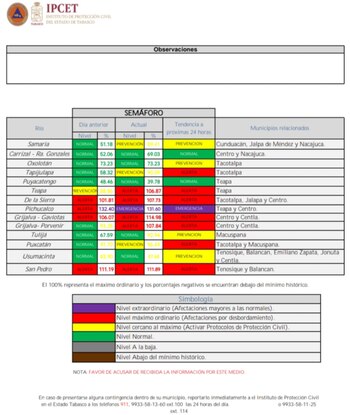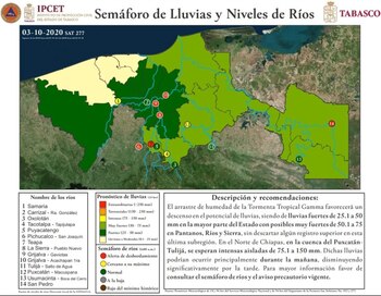 Además, se pide a la población estar pendiente de los comunicados que se emitan a través del Instituto de Protección Civil del Estado de Tabasco (IPCET), sobre la situación de emergencia ya que las lluvias continuarán los próximos días.