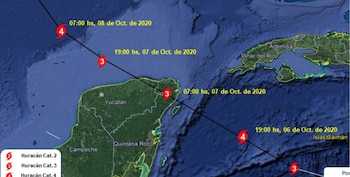 Permanece la zona de prevención por vientos de huracán En Tizimín, desde Dzilam, Yucatán, hasta Tulum, incluyendo a Cozumel, en Quintana Roo, y la zona de prevención por vientos de tormenta tropical desde Dzilam hasta Progreso, en Yucatán, y desde Tulum hasta Punta Herrero, en Quintana Roo.