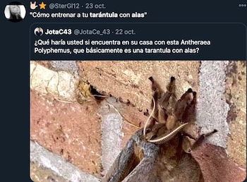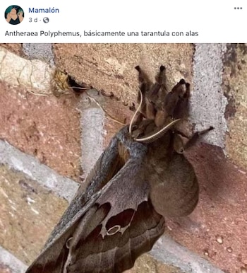 Esta semana causó conmoción en redes sociales las llamadas “tarantulas con alas”, miles de usuarios compartieron imágenes de estos animales que no son lo que parecen, en realidad se trata de una polilla grande de nombre científico Antheraea polyphemus.