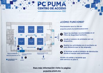 La Universidad Nacional Autónoma de México abrió el primer Centro de Acceso PC PUMA en la Facultad de Estudios Superiores (FES) Acatlán, donde se ofrece equipo de cómputo e Internet a alumnas y alumnos y al cuerpo docente para acceder a las clases en línea o realizar actividades escolares, siempre con apego a las medidas sanitarias requeridas ante la pandemia de COVID-19.
