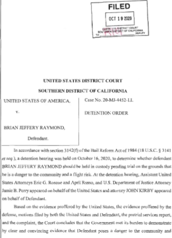 Diez días después, un juez federal consideró a Raymond como un riesgo de fuga y un peligro para la comunidad y ordenó su detención en espera de juicio.
