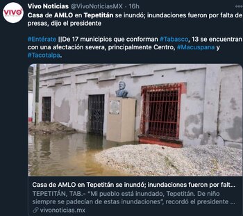Diversos municipios que han quedado inundados por las históricas lluvias que han azotado el estado y la saturación de las presas, se encuentra Tepetitán, en Macuspana, donde al igual que la mayoría de los ríos en la región, el Tulijá se desbordó e inundó las calles y casas, entre ellas, la de Juárez en donde está la casa donde vivió el presidente Andrés Manuel López Obrador.