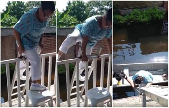 El video fue difundido por su hija en redes, muestra a la trabajadora de la salud en su rutina de salir todos los días temprano con una escalera y descender desde el segundo piso de su vivienda hacia una lancha donde la espera un joven, quien la traslada hasta el hospital en ella, ya que las anegaciones de agua solo permiten trasladarse de esta forma.