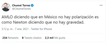 “AMLO diciendo que en México no hay polarización es como Newton diciendo que no hay gravedad”.