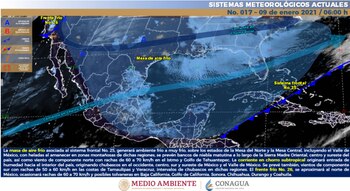 Por otro lado, la corriente en chorro subtropical originará entrada de humedad hacia el interior del país, originando lluvias con chubascos en el occidente, centro, sur y sureste de México, además del Valle de México. Se prevé también, vientos de componente sur con rachas de 50 a 60 km/h en las costas de Tamaulipas y Veracruz, intervalos de chubascos en dichas regiones. Al final del día, el nuevo frente frío No. 26, se aproximará al norte de México, ocasionará rachas de 60 a 70 km/h y posibles tolvaneras en Baja California, Golfo de California, Sonora, Chihuahua, Durango y Coahuila.