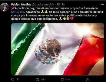 Aunque no se detalló los motivos de su renuncia, en su cuenta personal de Twitter dejó entrever que tiene nuevos proyectos.