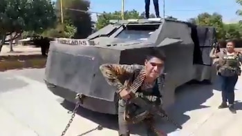 Su trofeo: un vehículo con blindaje artesanal —conocido también como camión monstruo— que presuntamente le arrebataron a sus acérrimos rivales. “Otro regalito, pura gente del señor Mencho, pura cuatro letras”, se escucha decir a los gatilleros que portan armas largas y equipo táctico con las insignias CJNG.