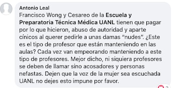 El video donde el profesor emite este comentario, fue publicado por sus alumnas, quienes lo tacharon de “machista y misógino”, además exigieron a la UANL una sanción, sin embargo hasta el momento la institución educativa no se pronunció al respecto.