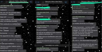 “Muy bien, adelante, de una vez les pondré falta entonces… jajaja. ¿Qué no? Todo conlleva una responsabilidad, si no, no tendría sentido, pero aplaudo su solidaridad, su entrega. Su…j ajaja, es broma, no aguanté la risa… perdón. Las apoyo pero sin violencia”, le respondió por Whatsapp.
