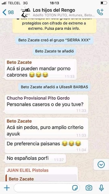 En una captura de pantalla difundida junto a la denuncia se ve un mensaje donde Beto Santos (como se hace llamar en su campaña política) escribe a aproximadamente un centenar de personas: “Acá si pueden mandar porno cabrones”. Ante esto, otra de las personas en el grupo le pregunta “personales caseros o de you tuve [YouTube]?”, a lo que Humberto responde “Acá sin pedos, puro amplio criterio ayuuk. De preferencia paisanas. No españolas porfi”.