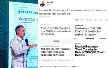 Durante la conferencia de ayer, el doctor Hugo López-Gatell Ramírez, Subsecretario de Prevención y Promoción de la Salud, criticó a los medios que tiene una afición por los números redondos”, haciendo alusión a los diarios nacionales e internacionales que prestan especial atención a las estadísticas y otras organizaciones que las utilizan para criticar las acciones del gobierno federal.