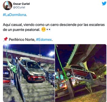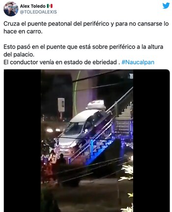 Según los reportes el conductor estaba bajo los influjos del alcohol y habría intentado cruzar el puente con todo y su auto a la altura del Palacio Municipal de Naucalpan, Estado de México.