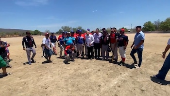 En el video, se escucha al mandatario mexicano decir “dos out, novena entrada, juego empatado” y “desde Medellin, Veracruz, la leyenda “Zurdo” Ortiz bateando”; cuando el ex lanzador profesional tira de la bola, el presidente la batea y se escuchan gritos de los acompañantes: “¡hey! se acabó el juego”.