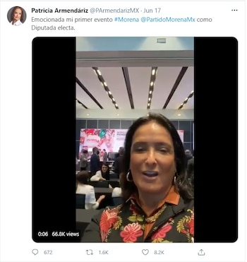 Por medio de su cuenta de Twitter, la empresaria y ex participante del famoso programa Shark Tank México, Patricia Armendáriz, presumió su primer evento como diputada electa de Morena. La empresaria contendió en las elecciones intermedias pasadas, celebradas el 6 se junio, y resultó ganadora de una diputación plurinominal en el Congreso.