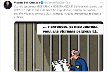“Sería un chiste, solo que detrás de todo lo que es la Línea 12, es pudrición, cinismo, corrupción, engaño, y lo más doloroso vidas humanas ¿Alguna vez veremos realmente justicia?”, dice el mensaje del expresidente.