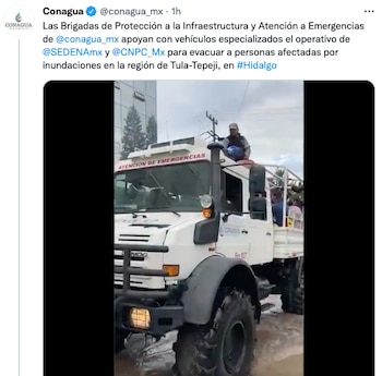 “Lamentablemente las lluvias en Hidalgo están ocasionando muchos daños, y una situación grave de inundación en la región de Tula, ya está actuando Protección Civil, se está implementando todo lo que tiene que ver con el plan DNIII de apoyo a la población”, expresó.