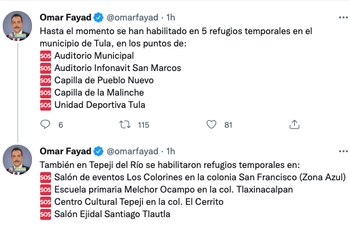 Por su parte el gobernador Omar Fayad informó que serían más de 36,000 las personas afectadas en nueve colonias donde se presentaron las mayores afectaciones.
