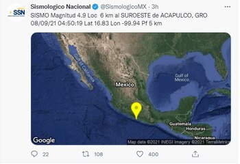La madrugada de este miércoles 8 de septiembre se registró un nuevo sismo de magnitud 4.9, cuyo epicentro se localizó muy cerca de Acapulco, Guerrero, así lo informó el Servicio Sismológico Nacional (SSN).