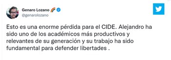 “Inadmisible censura a investigadores! Separan al Dr. Alejandro Madrazo del cargo de director de la Sede Regional Centro del CIDE, por su participación en un video en apoyo a investigadores de Cátedras Conacyt”, escribió Javier Flores quien se identifica como profesor de la Universidad Nacional Autónoma de México (UNAM).