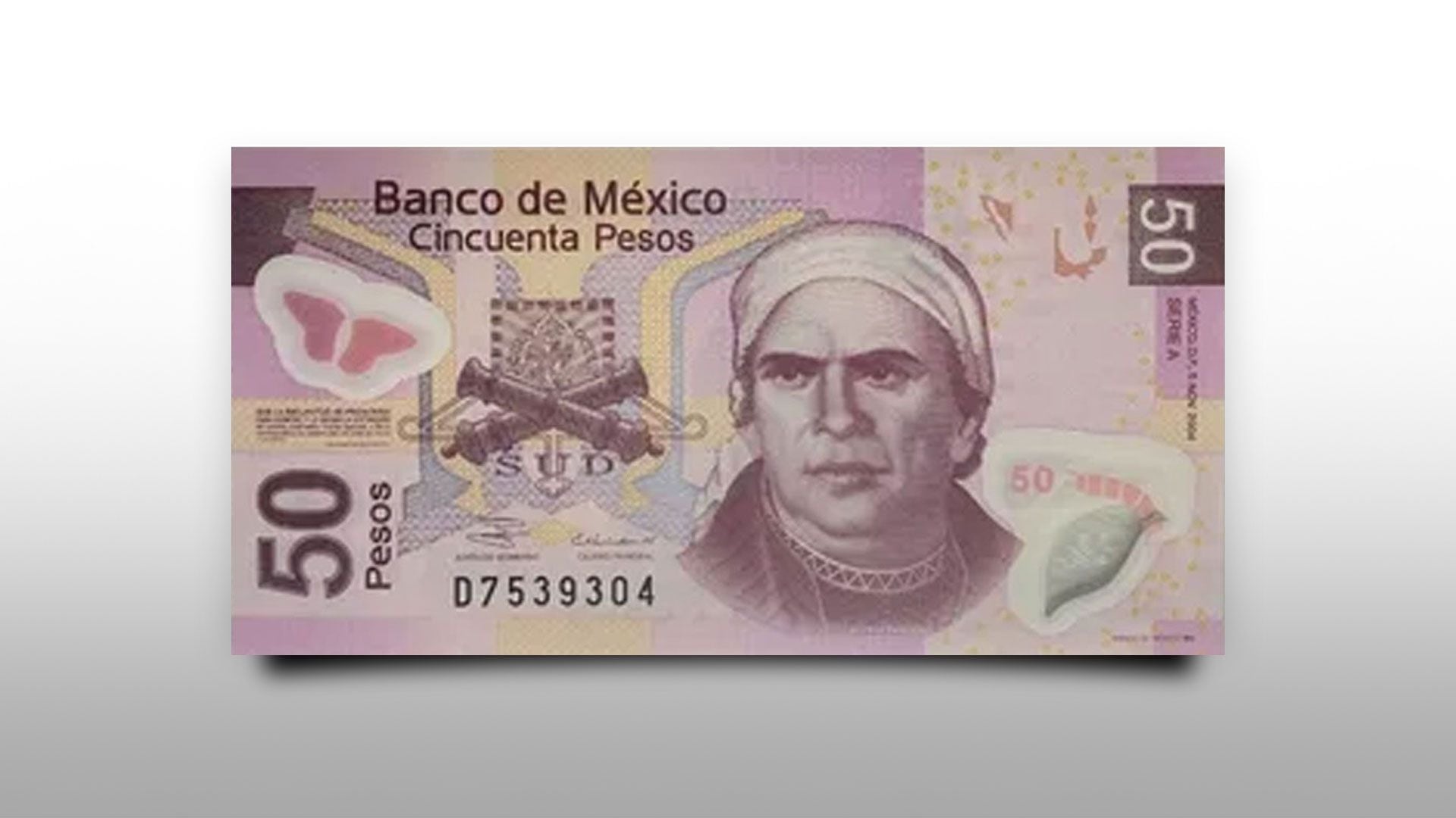 El actual ejemplar de 50 pesos, color magenta luce en su anverso la efigie (imagen) de José María Morelos y Pavón, quien en 1810 se unió a la rebelión independentista de Miguel Hidalgo y en 1813 convocó e instaló el Congreso de Chilpancingo.