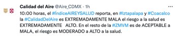Por ello, con fundamento en los Programas para Prevenir y Responder a Contingencias Ambientales Atmosféricas que aplican en la Zona Metropolitana del Valle de México, la Comisión Ambiental de la Megalópolis activó la contingencia en las alcaldías más afectadas por los altos niveles de contaminación: Iztapalapa, Milpa Alta, Tláhuac, Xochimilco.