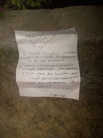 “MEJOR HAGANSE A UN LADO SI NO TAMBIEN LES PARTIREMOS LAS MADRES (sic)”, indicaba la narcomanta firmada por el brazo armado de las Fuerzas Especiales Mencho.