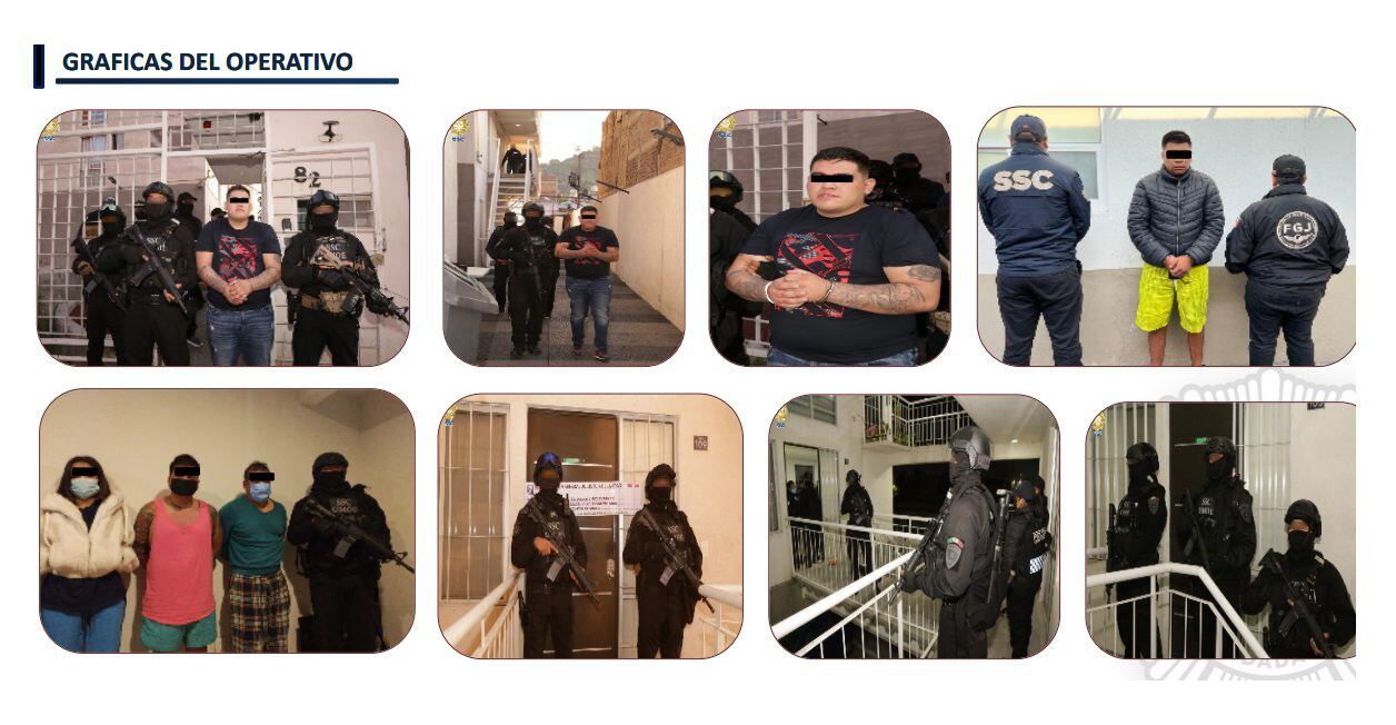 Los siete presuntos delincuentes cayeron este 24 de mayo tras revisar inmuebles del Estado de México en los municipios de Ecatepec, Acolman y Tlalnepantla. Aunque también fueron cateados domicilios de la Ciudad de México en las alcaldías Venustiano Carranza, Cuajimalpa y Cuauhtémoc.