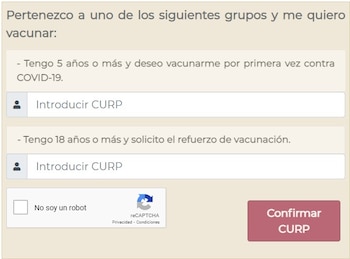 Una vez que se ingrese la CURP del menor, las madres, padres o tutores, deberán elegir la opción “quiero vacunarme” y a continuación deberán llenar los campos del formulario con la información que se solicita, como la entidad y el municipio, o en su caso alcaldía, de residencia, código postal y algún número telefónico.