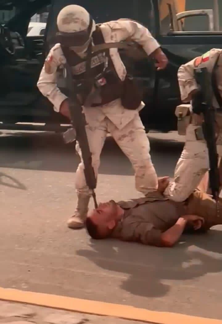 Los uniformados estaban detrás de un coche, otros continuaban apostados en la barricada que significó el vehículo oficial, en tanto los sujetos asegurados estaban bocabajo en el piso del estacionamiento, a espaldas del Oxxo. Un militar le comentaba a su compañero que vigilara su lado izquierdo.