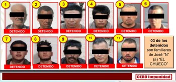 Hasta el pasado 30 de junio, la Secretaría de Seguridad y Protección Ciudadana informó que habían detenido a 11 personas relacionadas con el grupo criminal de José Noriel Portillo Gil, entre ellos, dos primos y su abuelo.